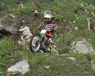 出口の岩盤がくせ者で、ふたこぶになっているので、間を抜けるか、頂点を行くかライダーによってまちまち。こぶの間を抜けていると以外と足が出る