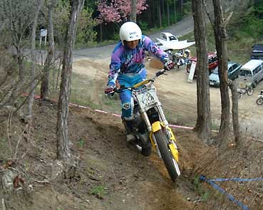 ☆コースレイアウト また、木を回り込むラインは、インからの左キャンバーターンは楽に出来ますが、次に左右連続キャンバーターンターン続くので以外と難しく、ここからの登りでの加速に失敗していたライダーが結構いましたね。(^^;;